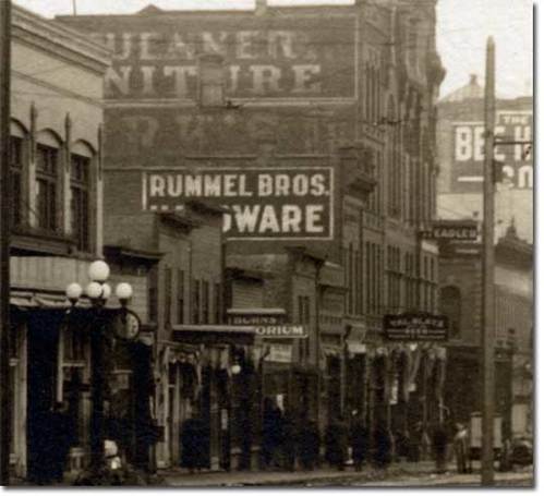 Here we have the small assortment of 1-2 story buildings that were torn down to make way for the Carpenter Hotel years later (1912).