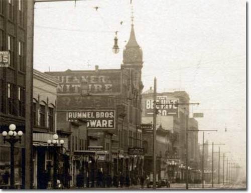 Notice the lack of a Shriver Johnson building on this corner. That wouldn't be built until 1918. The building to the right is the Paulton Block, later known as the Hanson Building. It burned down in 1991.