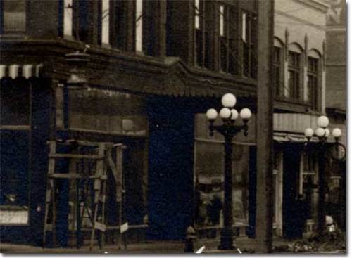 The Boyce-Greeley building had an overhang that stretched over the sidewalk back then. The street lamps were some 5-bulbed beauties that ran all the way down Phillips (at least on the west side of the street). There were also some bare bulbs hanging above the street.