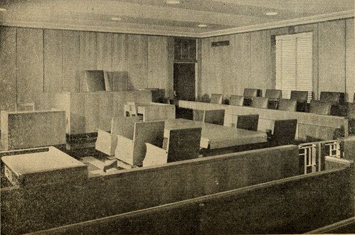 The second floor held the municipal courtroom, judges chambers, the health department, including laboratory, clerk of courts, and park department offices. The third floor held a 400 person assembly room, locker rooms, band director’s office and other as of yet unassigned office space.