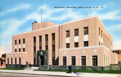 In the mid 1930s, Sioux Falls was in need of an actual city hall building. The city auditorium had been used to house the city offices and hold city commission meetings since 1889, when it was built. The city auditorium once housed the fire department as well, but it moved in 1912, after the Central Fire Station was built. Architect Harold Spitznagel designed the new city hall building with funds raised by municipal bond. The city was also eligible for Public Works Administration funds available from the federal government. The PWA was part of Franklin D. Roosevelt’s New Deal, a program designed to help the country get out of the Great Depression.