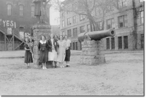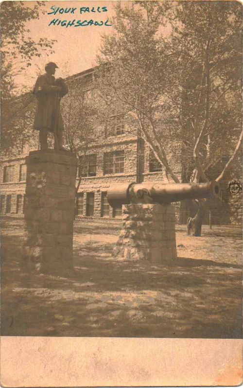 A civil statue and a surplus cannon once graced the lawn in front of Central School.