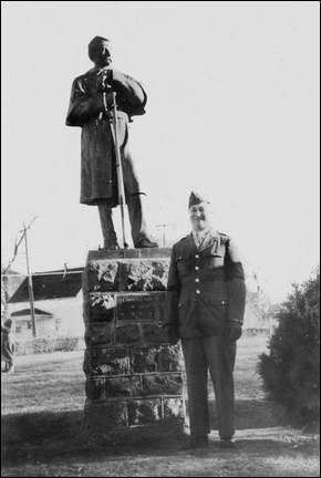 Here we see Sid Epstein (of Sid's Liquor fame) posing next to the statue in Lyon Park. This was a WWII era photo and Sid may have felt some camaraderie with the American Volunteer, both looking snappy in their uniforms.