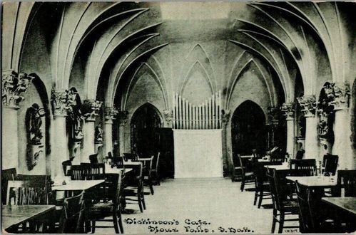 Between 1907 and 1958 there was a castle at 225 South Main street near what is now the Washington Pavilion. It was a strange sight to be sure, a bakery with two turrets, one rounded, the other square. Inside there were ornate corinthian columns with an amazingly sculpted ceiling and murals painted on the walls. The building was the Dickenson Cafe, and it was peculiar. It was perhaps not as peculiar as the man for whom it was built. This man was Richardson W. Dickenson and he was quite unlike most in the Sioux Falls area in the late 1800s and early 1900s. He was kind to a fault, though he did not come to his kindness through any religious adherence. He was kind to any in need, perhaps because he came from need, and knew the predicament well.