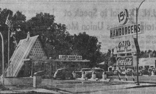 Griff's was a young company at the time, but it was booming. The first location in Wichita, Kansas was the creation of H.J. Griffith. In a year's time he was selling franchise rights to his creation. By 1965 Griff"s Burger Bars had grown to 65 locations across the states. The distinctive A-frame buildings were manufactured by a company called Valentine, which built small diners in Kansas and shipped them across the country.