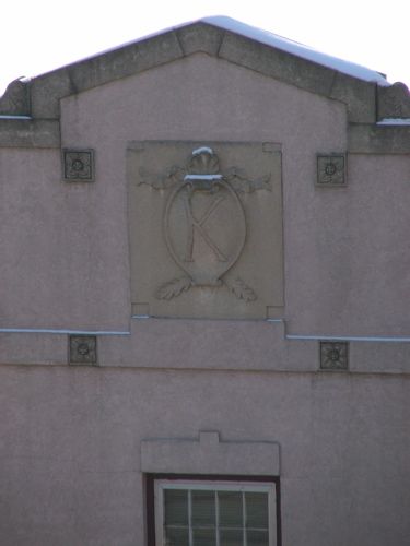 A closer look at the crest, flanked by the small flower tiles. They just don't do that kind of thing any more.