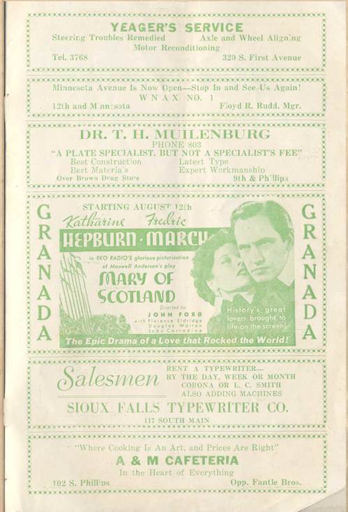 Notice the multiple references to WNAX in a Sioux Falls weekly (See also Page 17). WNAX is your big friend in the midwest, a radio station from Yankton that has been in operation since 1922. They were a station powerful enough to reach radios in Sioux Falls.
