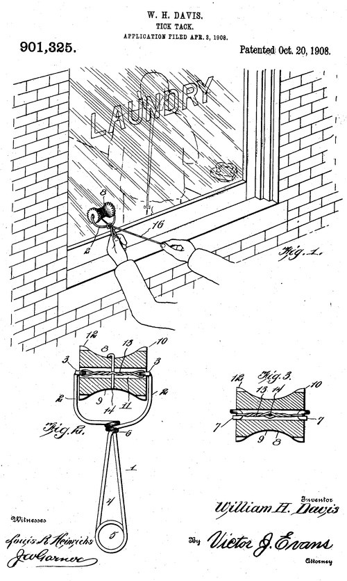 William H. Davis patented a particular design of Tic-tac in 1908. Not sure if the manufacture of these ever took off, or if he just used the patent to sue pranksters who used it on him.
