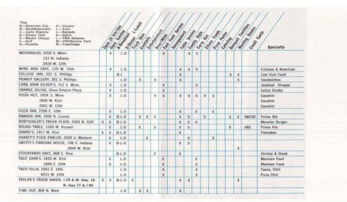 In '76, we were down to only one Kirk's location from the original duo, but we had a Shakey's and a Sambo's! Notice that only a couple of places would take credit cards and Visa wasn't one of them. This was printed before BankAmericard turned into Visa that same year.