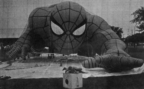 Raven reorganized in 1986, spinning off the inflatables division as Aerostar International Inc. Aerostar built inflatables for scientific research, parade balloons, and hot air balloons. That year the company produced Humpty Dumpty, baby Shamu, a starfish, and reworked the Olive Oyl balloon designed and built by Bob Kemp in 1982. Olive stood 75 feet tall, and was among the tallest balloons ever used in the parade. She was unable to stand upright during the 1985 parade; the cold, rainy weather was too much for the amount of helium her balloon could hold. To give the balloon more lift, Aerostar added Olive and Popeye’s baby, Swee’Pea, and a bunch of balloons for her to hold.