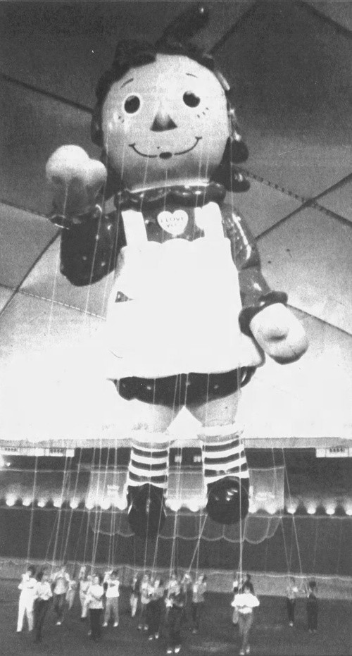 Tony Sarg continued to design balloons built by Goodyear through 1941, when the parade went on hiatus. The rubber used for balloons and other resources was needed for the war effort. Sarg died in 1942. When the parade resumed after the war, Goodyear handled the manufacture of new balloons, designed by various artists, until 1980. Kemp Balloons, Inc. took over manufacturing until 1983, when Macy’s approached Raven Industries. Raven signed on and began work on two new balloons for 1984. Raggedy Ann and Garfield would be their first entries into the event.