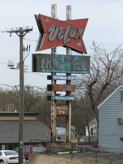 The classic signage of the DeLux is not to be missed. One can taste the irony, and it tastes like rusted metal. It boasts air conditioning, TV, Phones. It probably was a good stop for traveling salesmen of the bygone traveling salesmen age. I wouldn't be surprised if Willie Loman spent a month here.