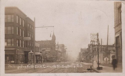 Notice the hustle and bustle of downtown Sioux Falls. The poles have been removed from the middle of the streets and you can see