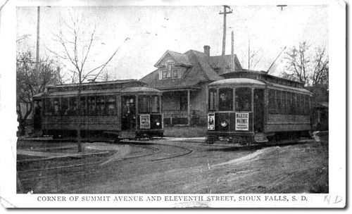 The Sioux Falls Traction System had a route traversing Summit avenue almost from the start. The line went by both Sioux Falls University (now the University of Sioux Falls) and the Lutheran Normal School (now Augustana). This route was also used by Pettigrew and Tate's Street Railroad.