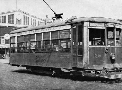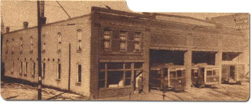 Pictured is the trolley barn formerly to the south of the old Coliseum. The cars were maintained here and kept during off-duty hours.